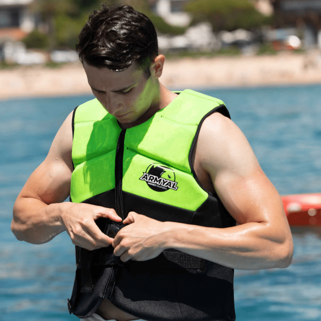 En Armyal, todos nuestros chalecos son de 50N, el nivel recomendado para deportes acuáticos como motos de agua, ya que combinan flotabilidad, comodidad y libertad de movimiento.